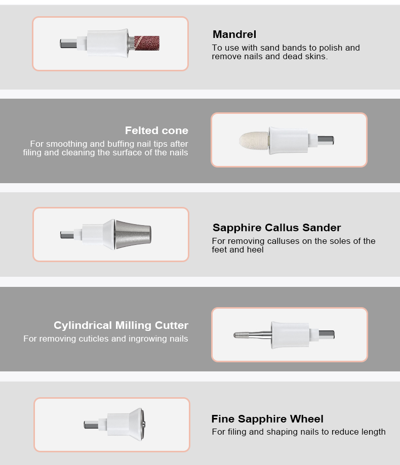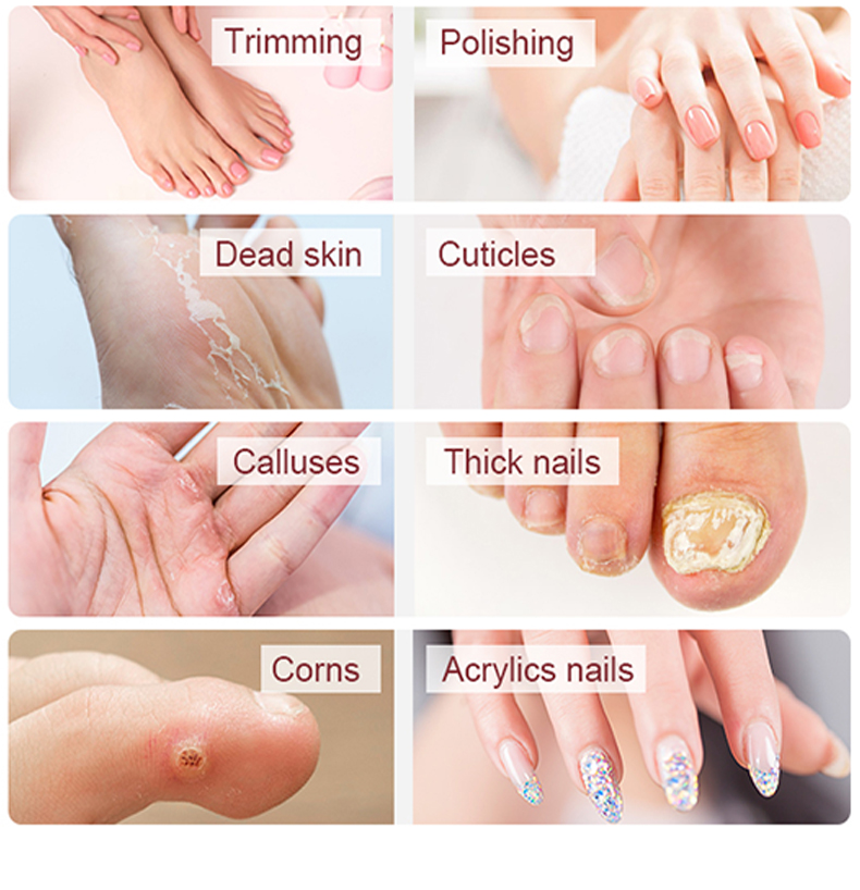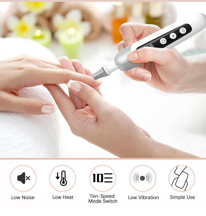 - 10 NASTAVENÍ RYCHLOSTI: Vyzkoušejte sílu naší sady pro elektrickou manikúru, která obsahuje 10 progresivních nastavení rychlosti a všestranné otáčení ve směru a proti směru hodinových ručiček. Vrták na nehty zaručuje přesné pilování silných nehtů na rukou a nohou a je přizpůsobený pro všechny typy pleti, včetně jedinců s cukrovkou.