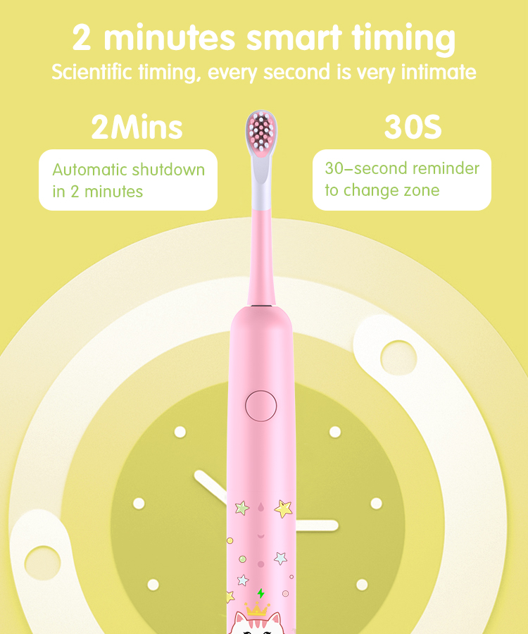 - AUTOMATICKÝ ČASOVAČ: Tento elektronický zubní kartáček má vestavěný 2minutový chytrý časovač, který povzbudí vaše dítě k delšímu čištění, vytvoří si dobré návyky čištění a omezí zubní kaz.
