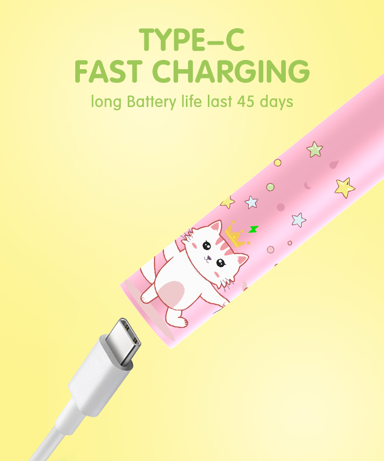- EXTRA DLOUHÁ ŽIVOTNOST HOŘENÍ: Tento dobíjecí dětský elektrický zubní kartáček vyžaduje pouze 3-4 hodiny nabíjení a funguje až 60 dní. Snadno se používá doma i na cestách, abyste se drželi každodenního čištění.